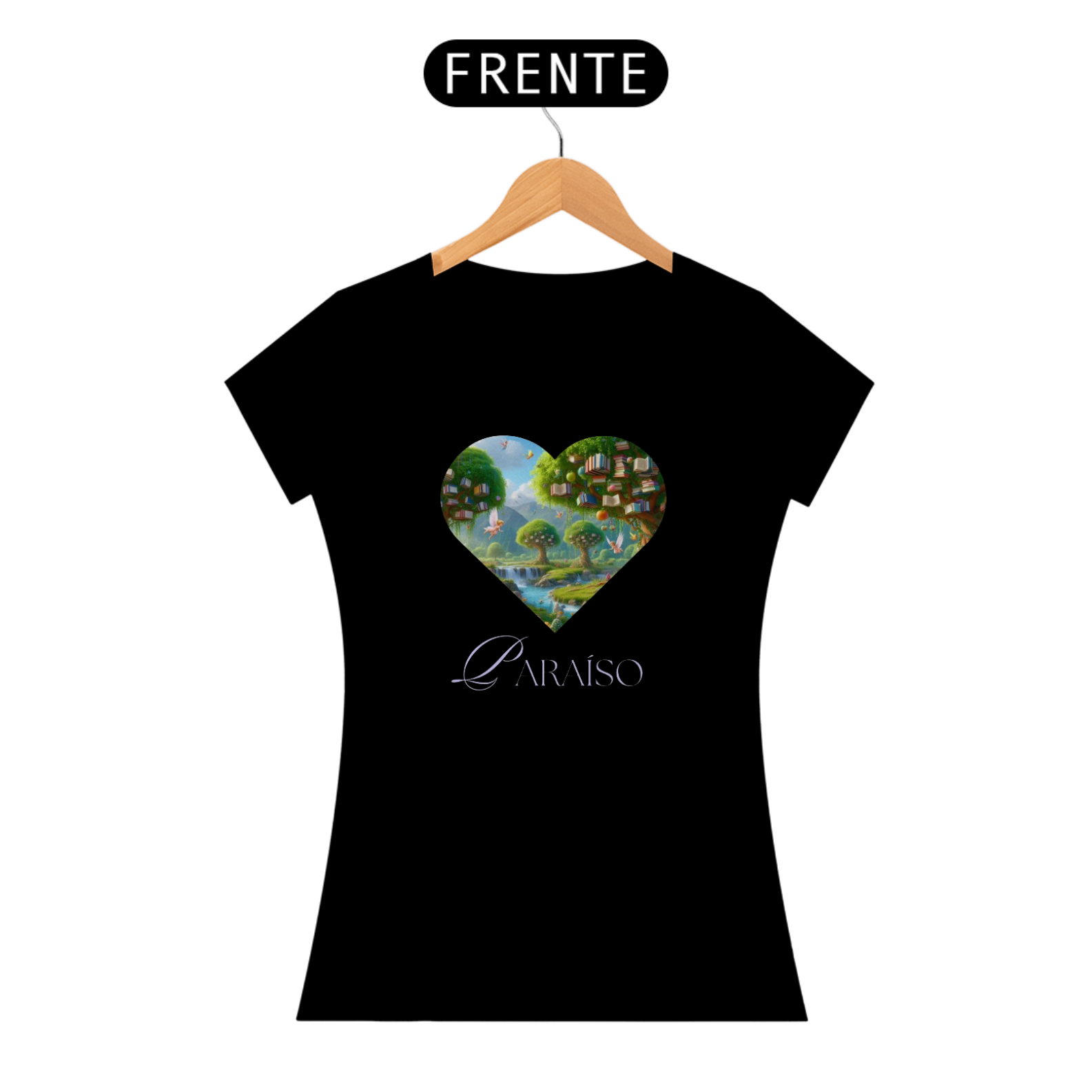 Explore o paraíso da leitura com a Camiseta "Paraíso Literário", onde um coração é adornado com uma paisagem de beleza natural, repleta de árvores com livros no topo. Esta estampa é um convite para se perder nas páginas de histórias encantadoras enquanto se maravilha com a exuberância da natureza.